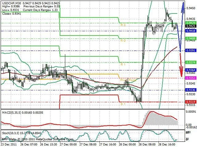 Předpokládaný pohyb pro dnešní den LONG. Případné vstupy do obchodu z hladiny 0.939 s předpokládaným cílem 0.945, případně až 0.947. Proražení hladiny 0.939 může vést k pohybu s pravděpodobným cílem 0.9355 až 0.9305.