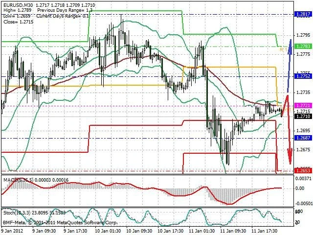 Předpokládaný pohyb pro dnešní den SHORT. Případné vstupy do obchodu z hladiny 1.273 s předpokládaným cílem 1.266, případně až 1.263. Proražení hladiny 1.273 může vést k pohybu s pravděpodobným cílem 1.279 až 1.2815.