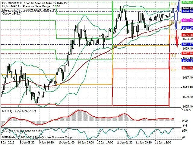 Předpokládaný pohyb pro dnešní den LONG. Případné vstupy do obchodu z hladiny 1 638 s předpokládaným cílem 1 650, případně až 1 660. Proražení hladiny 1 638 může vést k pohybu s pravděpodobným cílem 1 630 až 1 623.