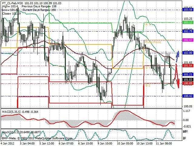 Předpokládaný pohyb pro dnešní den SHORT. Případné vstupy do obchodu z hladiny 101.6 s předpokládaným cílem 100.85 případně až 100.4. Proražení hladiny 101.6 může vést k pohybu s pravděpodobným cílem 102.05 až 102.5.