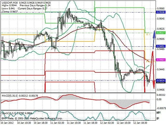 Předpokládaný pohyb pro dnešní den SHORT. Případné vstupy do obchodu z hladiny 0.948 s předpokládaným cílem 0.941, případně až 0.938. Proražení hladiny 0.948 může vést k pohybu s pravděpodobným cílem 0.952 až 0.954.