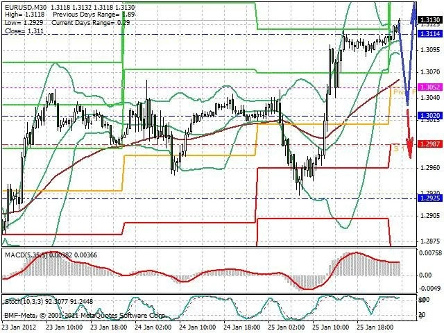 Předpokládaný pohyb pro dnešní den LONG. Případné vstupy do obchodu z hladiny 1.3035 s předpokládaným cílem 1.316, případně až 1.3195. Proražení hladiny 1.3035 může vést k pohybu s pravděpodobným cílem 1.2975 až 1.293.