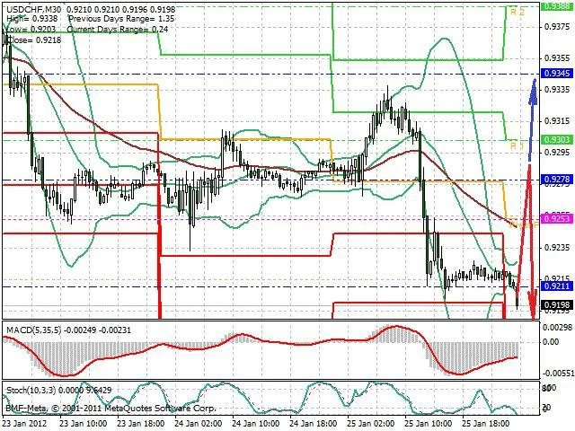 Předpokládaný pohyb pro dnešní den SHORT. Případné vstupy do obchodu z hladiny 0.929 s předpokládaným cílem 0.918, případně až 0.915. Proražení hladiny 0.929 může vést k pohybu s pravděpodobným cílem 0.934 až 0.937.
