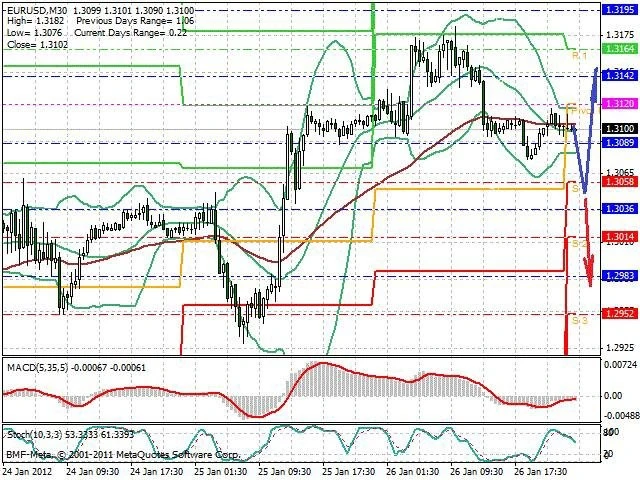 Předpokládaný pohyb pro dnešní den LONG. Případné vstupy do obchodu z hladiny 1.305 s předpokládaným cílem 1.3145, případně až 1.3185. Proražení hladiny 1.305 může vést k pohybu s pravděpodobným cílem 1.3025 až 1.298.