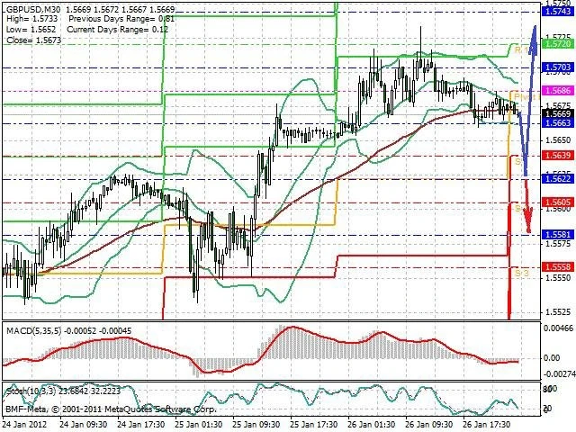 Předpokládaný pohyb pro dnešní den LONG. Případné vstupy do obchodu z hladiny 1.5625 s předpokládaným cílem 1.5735, případně až 1.577. Proražení hladiny 1.5625 může vést k pohybu s pravděpodobným cílem 1.558 až 1.555.