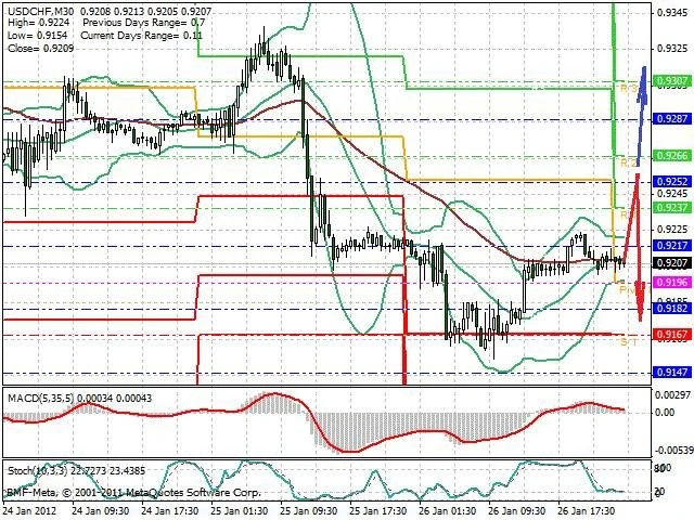 Předpokládaný pohyb pro dnešní den SHORT. Případné vstupy do obchodu z hladiny 0.9255 s předpokládaným cílem 0.918, případně až 0.915. Proražení hladiny 0.9255 může vést k pohybu s pravděpodobným cílem 0.931 až 0.934.