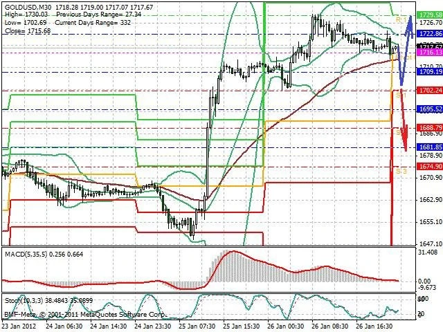Předpokládaný pohyb pro dnešní den LONG. Případné vstupy do obchodu z hladiny 1 703 s předpokládaným cílem 1 730, případně až 1 738. Proražení hladiny 1 703 může vést k pohybu s pravděpodobným cílem 1 680 až 1 669.