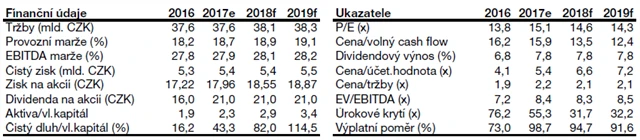 "To se promítlo do naší projekce distribuce hotovosti akcionářům včetně emisního ážia. Pro příští dva roky tak očekáváme stejnou výši celkové dividendy na úrovni 21 Kč na akcii, poté pak mírný nárůst o jednu korunu," popisuje Frayer.