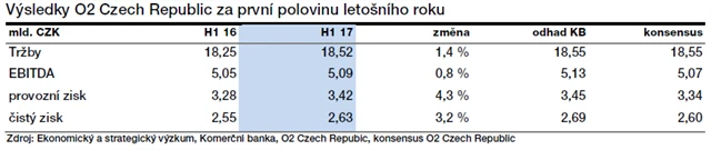 Na základě modelů diskontovaných toků hotovosti a dividend mírně zvyšujeme roční cílovou cenu akcií O2 Czech Republic z 267 na 270 korun. Ta tak po započtení výplaty akcionářům (21 Kč na akcii včetně emisního ážia) představuje potenciální celkový výnos 6,5 %, což odpovídá doporučení "držet". Mezi hlavní rizika analýzy patří tlak na ceny telekomunikačních služeb, vývoj ziskovosti na Slovensku a razantnější posílení koruny vůči euru, říká analytik Miroslav Frayer z Komerční banky.