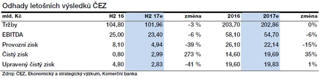 V krátkodobém horizontu jsou hospodářské výsledky společnosti ČEZ podporovány výraznými jednorázovými vlivy, které částečně kompenzují propad zisku EBITDA. Jednorázové prodeje majetku a finančních aktiv umožnily managementu zvýšit odhad očištěného čistého zisku v roce 2017 na 19 miliard Kč.
