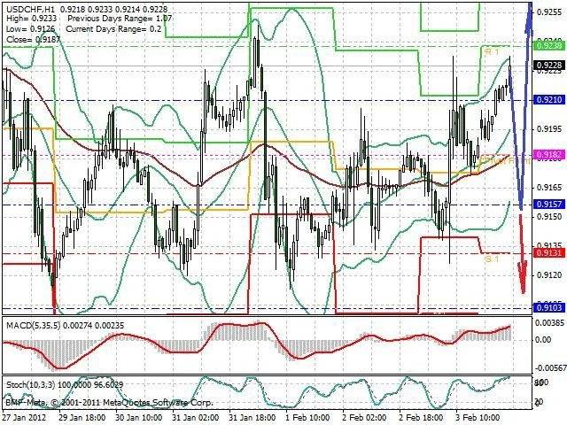 Předpokládaný pohyb pro dnešní den LONG. Případné vstupy do obchodu z hladiny 0.9155 s předpokládaným cílem 0.9265, případně až 0.929. Proražení hladiny 0.9155 může vést k pohybu s pravděpodobným cílem 0.911 až 0.906.