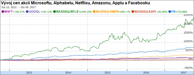 Akcie Netflixu za posledních 5 let celé skupině dominují