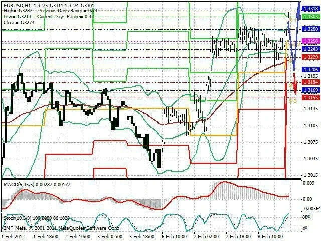 předpokládaným cílem 1.3325 případně až 1.3355. Proražení hladiny 1.3205 může vést k pohybu s pravděpodobným cílem 1.3165 až 1.3095