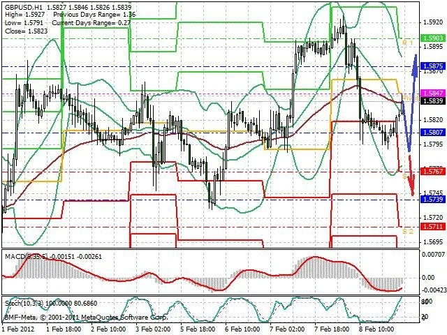 Předpokládaný pohyb pro dnešní den LONG. Případné vstupy do obchodu z hladiny 1.5785 s předpokládaným cílem 1.5885, případně až 1.5925. Proražení hladiny 1.5785 může vést k pohybu s pravděpodobným cílem 1.5745 až 1.573.