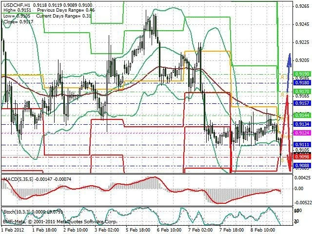 Předpokládaný pohyb pro dnešní den SHORT. Případné vstupy do obchodu z hladiny 0.9165 s předpokládaným cílem 0.908, případně až 0.906. Proražení hladiny 0.9165 může vést k pohybu s pravděpodobným cílem 0.921 až 0.9265.