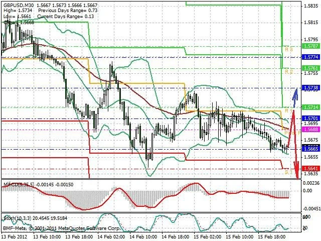 Předpokládaný pohyb pro dnešní den SHORT. Případné vstupy do obchodu z hladiny 1.571 s předpokládaným cílem 1.56, případně až 1.5575. Proražení hladiny 1.571 může vést k pohybu s pravděpodobným cílem 1.5735 až 1.577.