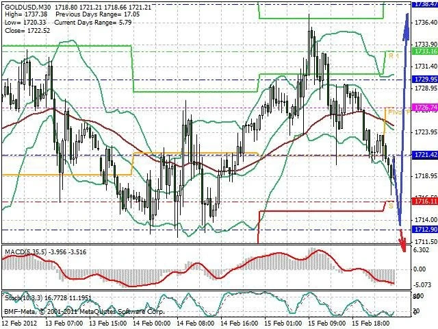 Předpokládaný pohyb pro dnešní den LONG. Případné vstupy do obchodu z hladiny 1 713 s předpokládaným cílem 1 737, případně až 1 741. Proražení hladiny 1 713 může vést k pohybu s pravděpodobným cílem 1 704 až 1 692.