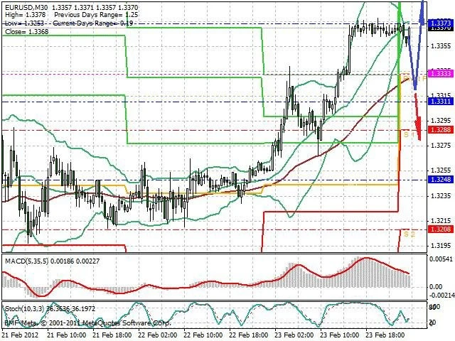 Předpokládaný pohyb pro dnešní den LONG. Případné vstupy do obchodu z hladiny 1.332 s předpokládaným cílem 1.3425 případně až 1.345. Proražení hladiny 1.332 může vést k pohybu s pravděpodobným cílem 1.328 až 1.3245.