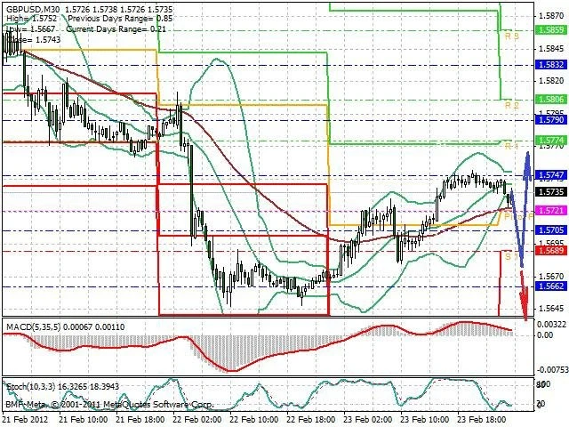 Předpokládaný pohyb pro dnešní den LONG. Případné vstupy do obchodu z hladiny 1.568 s předpokládaným cílem 1.5765, případně až 1.581. Proražení hladiny 1.568 může vést k pohybu s pravděpodobným cílem 1.5645 až 1.5625.