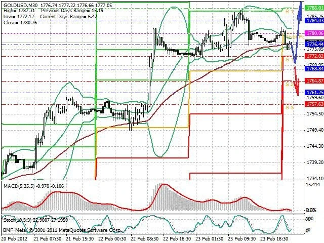 Předpokládaný pohyb pro dnešní den LONG. Případné vstupy do obchodu z hladiny 1 770 s předpokládaným cílem 1 790, případně až 1 800. Proražení hladiny 1 770 může vést k pohybu s pravděpodobným cílem 1 760 až 1 750.