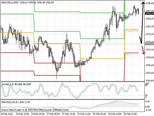 Předpokládaný pohyb pro dnešní den LONG. Případné vstupy do obchodu z hladiny 1 775 s předpokládaným cílem 1 800, případně až 1 815. Proražení hladiny 1 775 může vést k pohybu s pravděpodobným cílem 1 760 až 1 750.