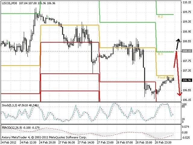 Předpokládaný pohyb pro dnešní den SHORT. Případné vstupy do obchodu z hladiny 108.15 s předpokládaným cílem 105.8 případně až 104.85. Proražení hladiny 108.15 může vést k pohybu s pravděpodobným cílem 108.75 až 109.35.