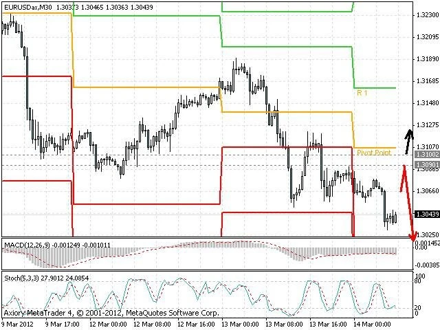 Předpokládaný pohyb pro dnešní den SHORT. Případné vstupy do obchodu z hladiny 1.309 s předpokládaným cílem 1.301, případně až 1.297. Proražení hladiny 1.31 může vést k pohybu s pravděpodobným cílem 1.312 až 1.3155.