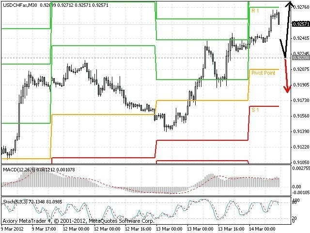 Předpokládaný pohyb pro dnešní den LONG. Případné vstupy do obchodu z hladiny 0.922 s předpokládaným cílem 0.93, případně až 0.932. Proražení hladiny 0.922 může vést k pohybu s pravděpodobným cílem 0.9185 až 0.9155.
