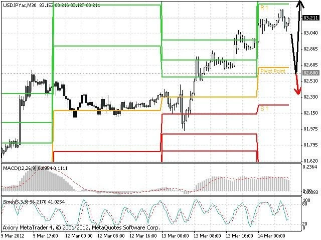 Předpokládaný pohyb pro dnešní den LONG. Případné vstupy do obchodu z hladiny 82.6 s předpokládaným cílem 83.5, případně až 83.75. Proražení hladiny 82.6 může vést k pohybu s pravděpodobným cílem 82.35 až 82.1.