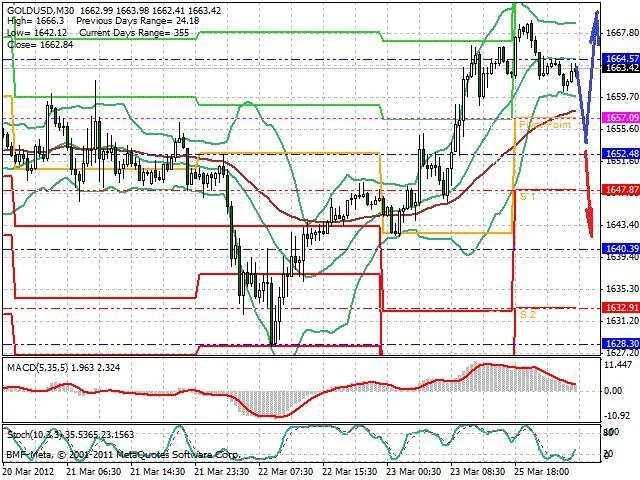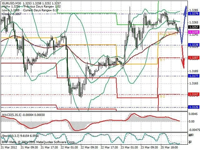 Předpokládaný pohyb pro dnešní den LONG. Případné vstupy do obchodu z hladiny 1.323 s předpokládaným cílem 1.329 případně až 1.331. Proražení hladiny 1.322 může vést k pohybu s pravděpodobným cílem 1.319 až 1.316.
