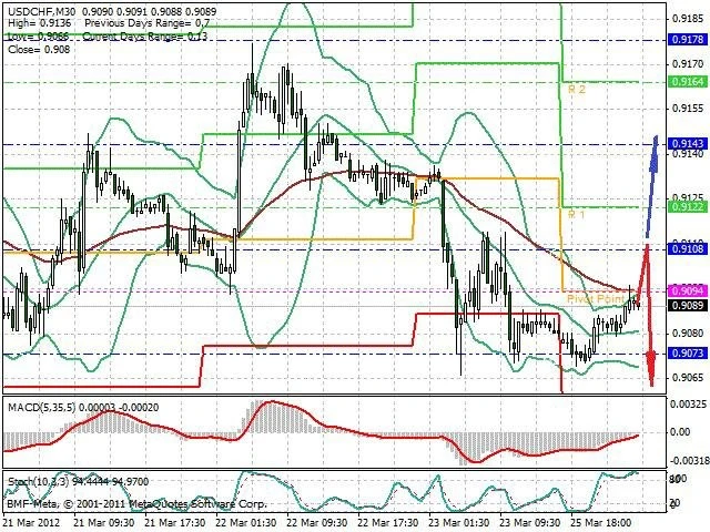 Předpokládaný pohyb pro dnešní den SHORT. Případné vstupy do obchodu z hladiny 0.911 s předpokládaným cílem 0.906, případně až 0.9035. Proražení hladiny 0.9115 může vést k pohybu s pravděpodobným cílem 0.9145 až 0.9175.
