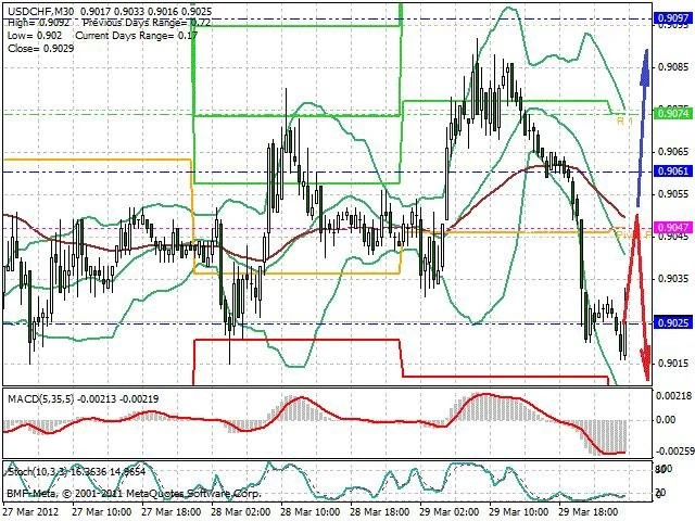 Předpokládaný pohyb pro dnešní den SHORT. Případné vstupy do obchodu z hladiny 0.905 s předpokládaným cílem 0.901, případně až 0.8975. Proražení hladiny 0.9055 může vést k pohybu s pravděpodobným cílem 0.909 až 0.9115.