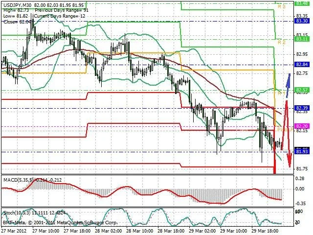 Předpokládaný pohyb pro dnešní den SHORT. Případné vstupy do obchodu z hladiny 82.45 s předpokládaným cílem 81.8, případně až 81.7. Proražení hladiny 82.5 může vést k pohybu s pravděpodobným cílem 82.75 až 83.