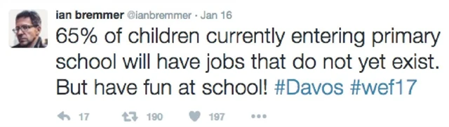 Co je tedy dnes možné říci s jistotou? To, jak bude v důsledku automatizace, demografického vývoje a dalších trendů vypadat trh práce zítřka, prostě nevíme. I proto se nade vše bude cenit hluboká expertiza, na straně druhé pak flexibilita (35 % toho, co dnes víme, má být zítra nepotřebné) a ochota se celoživotně vzdělávat. Jak říká Stéphane Kasriel, šéf Upwork, globálně působící sítě propojující lidi na volné noze a subjekty poptávající jejich služby, své znalosti je a bude potřeba každých pět let obnovovat, jinak to nepůjde.