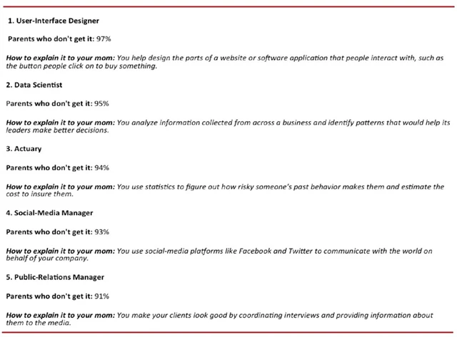 Konflikty způsobené snahou řídit (své ratolesti) podle zpětného zrcátka se opakovaně vyhrocují v nastávající adrenalinové době maturit a přihlášek na vysokou školu. Nepochopení nových pracovních pozic a obecněji standardů (a tím možností na trhu práce) je přitom jen jedním z důvodů. Mezi další patří mnohými zavrhované bullshit jobs jako profesionální mazlič, v neposlední řadě pak zažité představy o mnoha profesích, které byly donedávna garancí prestiže (č)i stability, zatímco napříště jí být nemusejí.