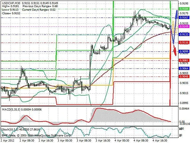 Předpokládaný pohyb pro dnešní den LONG. Případné vstupy do obchodu z hladiny 0.9115 s předpokládaným cílem 0.918, případně až 0.92. Proražení hladiny 0.911 může vést k pohybu s pravděpodobným cílem 0.909 až 0.907.