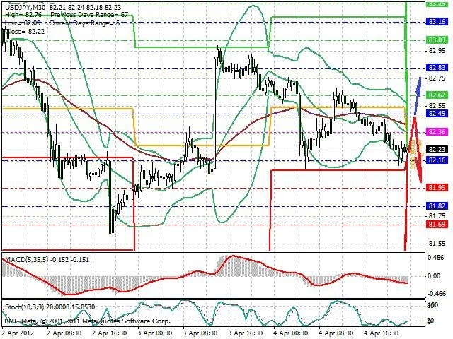 Předpokládaný pohyb pro dnešní den SHORT. Případné vstupy do obchodu z hladiny 82.45 s předpokládaným cílem 82.05, případně až 81.85. Proražení hladiny 82.5 může vést k pohybu s pravděpodobným cílem 82.75 až 83.