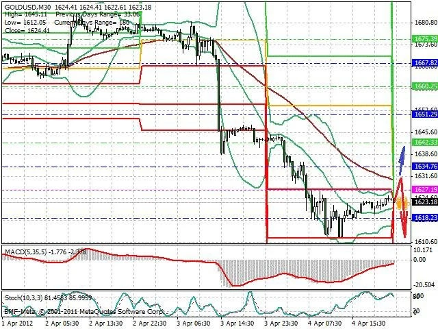 Předpokládaný pohyb pro dnešní den SHORT. Případné vstupy do obchodu z hladiny 1 630 s předpokládaným cílem 1 612, případně až 1 605. Proražení hladiny 1 630 může vést k pohybu s pravděpodobným cílem 1 639 až 1 648.