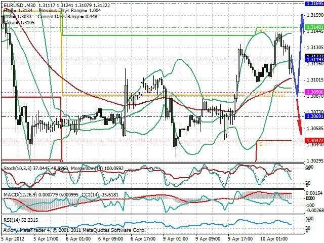 Předpokládaný pohyb pro dnešní den LONG. Případné vstupy do obchodu z hladiny 1.3085 s předpokládaným cílem 1.316 případně až 1.318. Proražení hladiny 1.3085 může vést k pohybu s pravděpodobným cílem 1.3055 až 1.303.