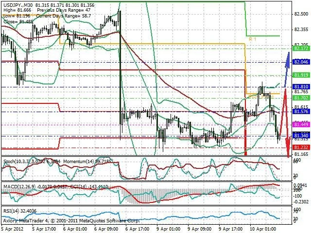 Předpokládaný pohyb pro dnešní den SHORT. Případné vstupy do obchodu z hladiny 81.8 s předpokládaným cílem 81.15, případně až 80.8. Proražení hladiny 81.8 může vést k pohybu s pravděpodobným cílem 82.15 až 82.5.