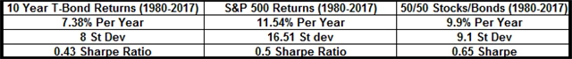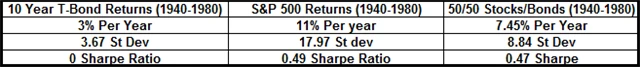 Dluhopisy v té době dosahovaly vzhledem k riziku vlastně velice špatných výnosů (Sharpeho poměr 0), ale stále platily za nástroj s nízkou volatilitou. V kombinaci s akciemi tedy výrazně snížily riziko portfolia, ale výnosy vzhledem k riziku u tohoto portfolia byly stále zajímavé. A to byl (a stále je) hlavní důvod pro držení dluhopisů. Nejde o atraktivní výnosy, ale o vyrovnání volatility portfolia na míru snesitelnou pro investory.