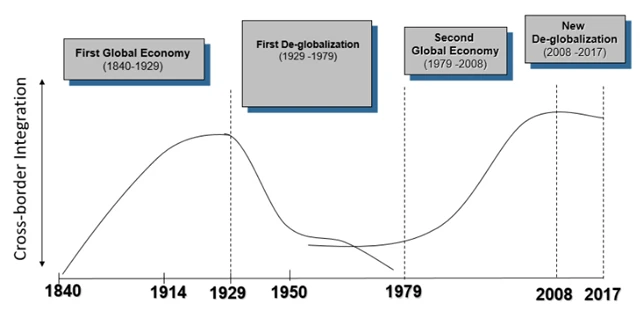 Střih, přišel rok 2008, kolaps Lehman Brothers a s ním globální hospodářská krize (ukázka Achillovy paty hluboce propojeného, na sobě závislého světa) a mnohé bylo najednou jinak. Růst obchodu si dal nucenou pauzu, po které se sice vrátil, ale slabší. Objem přeshraničních toků kapitálu při srovnání let 2007 a 2017 propadl o 65 %. A tak by se dalo pokračovat. Není proto divu, že uznávané hlasy, třeba profesor Geoffrey Jones z Harvard Business School, ohlásily příchod další pokrizové deglobalizace.