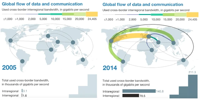 Deglobalizace vyplývající z "blbé" nálady části společnosti ovšem není všeobjímající. Navzdory odporu vůči uprchlíkům například dosáhl jejich počet letos historického maxima (a vzhledem ke zhoršování životních podmínek v hustě zabydlených oblastech se situace hned tak nezmění). Podobně nabírají na síle i další typy přeshraničních toků. Například data byla z pohledu globální ekonomiky v roce 2005 na úrovni statistické odchylky, v roce 2014 již přispěla k jejímu růstu více než obchod se zbožím.