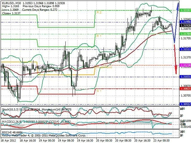 Předpokládaný pohyb pro dnešní den LONG. Případné vstupy do obchodu z hladiny 1.3165 s předpokládaným cílem 1.324 případně až 1.328. Proražení hladiny 1.316 může vést k pohybu s pravděpodobným cílem 1.3105 až 1.3065.