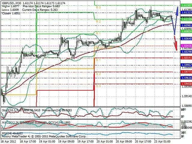 Předpokládaný pohyb pro dnešní den LONG. Případné vstupy do obchodu z hladiny 1.6075 s předpokládaným cílem 1.615, případně až 1.618. Proražení hladiny 1.607 může vést k pohybu s pravděpodobným cílem 1.6035 až 1.6.