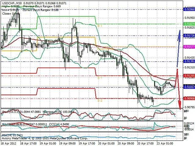 Předpokládaný pohyb pro dnešní den SHORT. Případné vstupy do obchodu z hladiny 0.913 s předpokládaným cílem 0.907, případně až 0.905. Proražení hladiny 0.9135 může vést k pohybu s pravděpodobným cílem 0.9175 až 0.921.