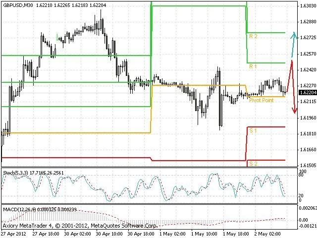 Předpokládaný pohyb pro dnešní den SHORT. Případné vstupy do obchodu z hladiny 1.625 s předpokládaným cílem 1.6205, případně až 1.6185. Proražení hladiny 1.625 může vést k pohybu s pravděpodobným cílem 1.6275 až 1.63.