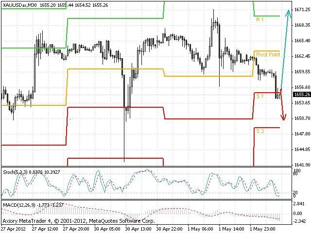 Předpokládaný pohyb pro dnešní den LONG. Případné vstupy do obchodu z hladiny 1 656 s předpokládaným cílem 1 671, případně až 1 680. Proražení hladiny 1 656 může vést k pohybu s pravděpodobným cílem 1 649 až 1 642.