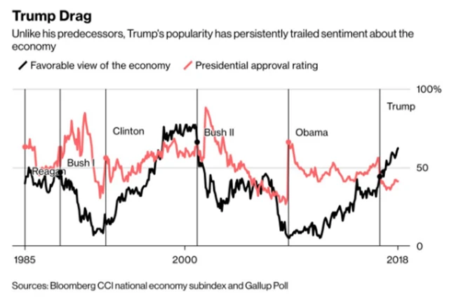 Vztah podstatné části voličů k Donaldu Trumpovi je na bodu mrazu, hospodářskému růstu navzdory. V mnoha zemích, kterým se ekonomicky daří, jsou pak lidé nespokojení se zažitými politickými pořádky. Výsledkem je rostoucí podpora antisystémových sil a prohlubující se polarizace ve společnosti. To může ve chvíli, kdy ekonomika zpomalí nebo zastaví, způsobit explozi.