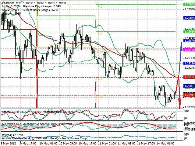 Předpokládaný pohyb pro dnešní den SHORT. Případné vstupy do obchodu z hladiny 1.2915 s předpokládaným cílem 1.2875 případně až 1.286. Proražení hladiny 1.2925 může vést k pohybu s pravděpodobným cílem 1.2955 až 1.298.